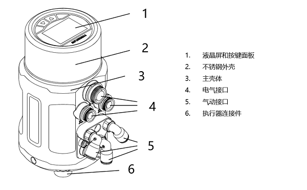 將定位器與閥門連接之后,定位器可與閥門之間做角度調整。若需要調整定位器操作界面角度,松開A處的內六角緊定螺釘后,順時針或逆時針180°范圍內調整到需要的角度,再擰緊緊定螺釘。